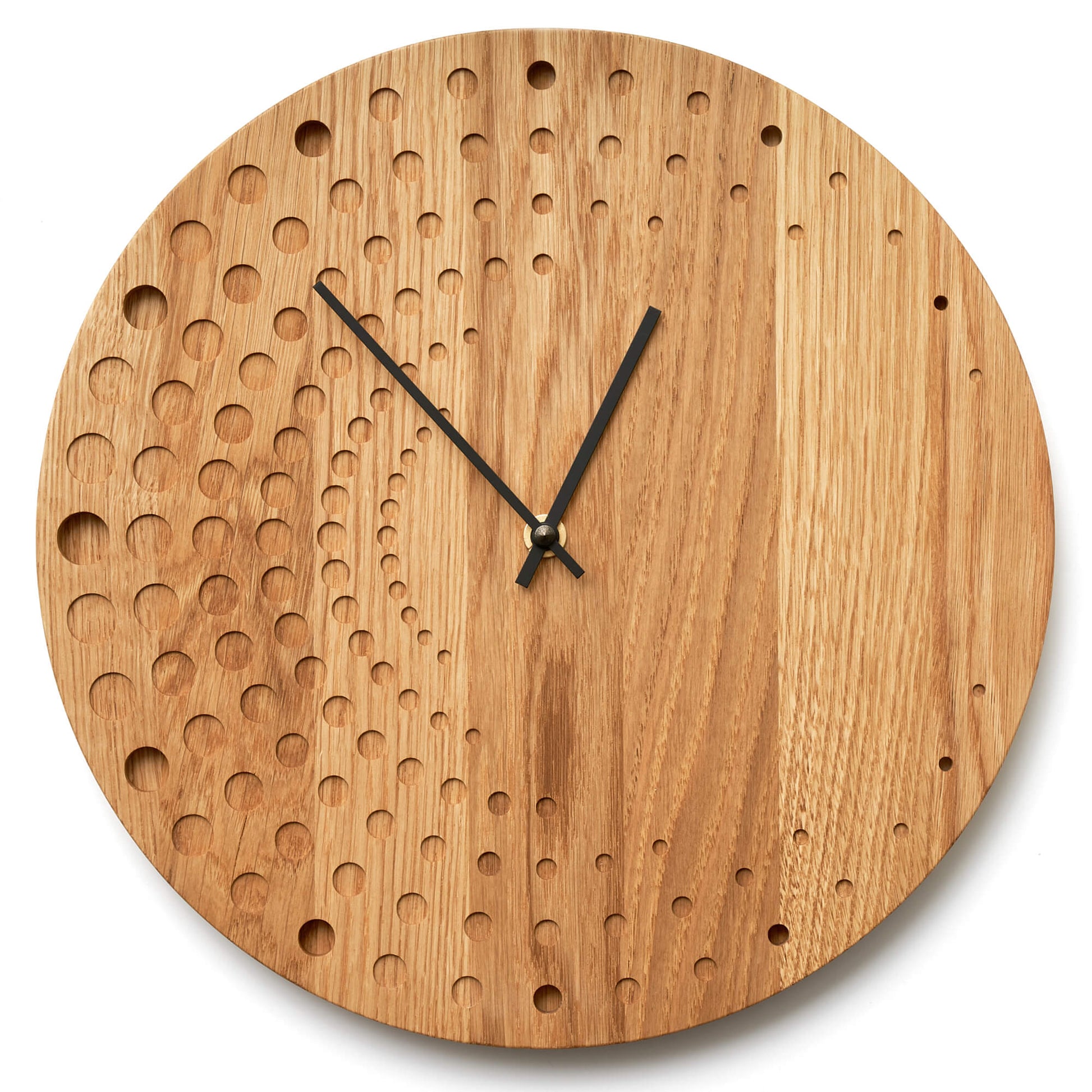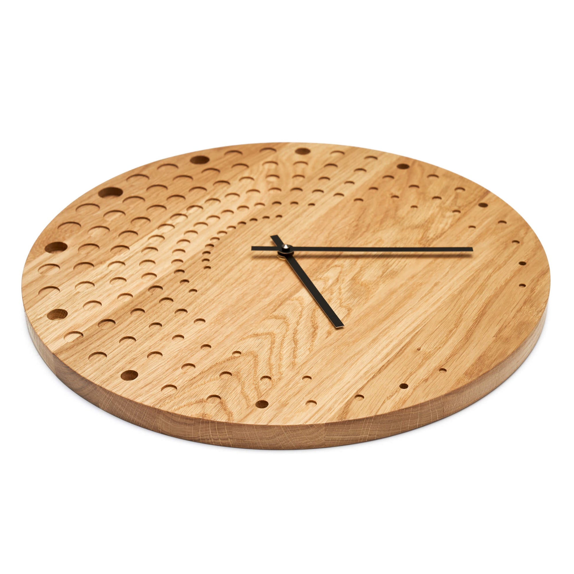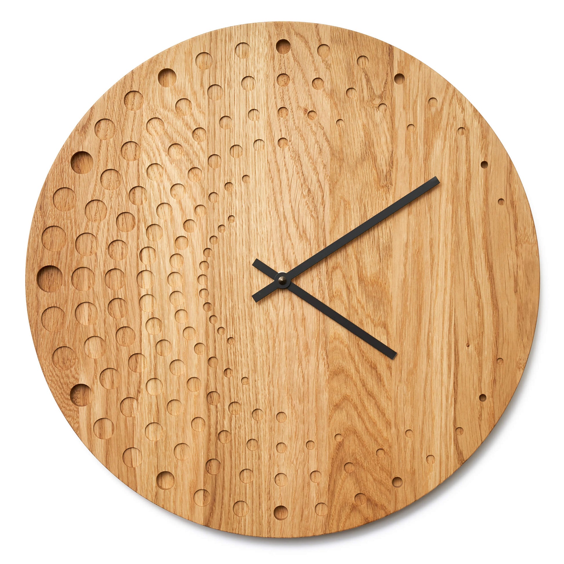 Clock made from solid oak wood, perfect for a modern home.